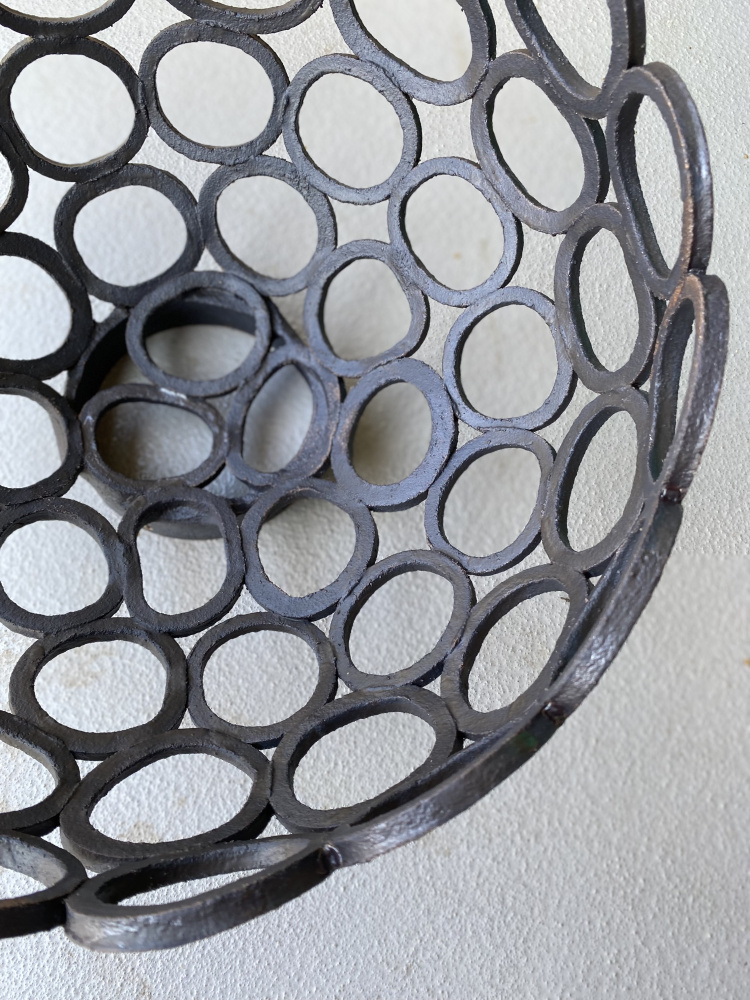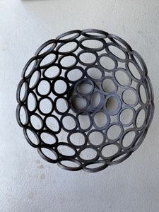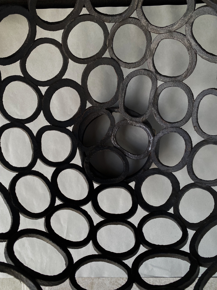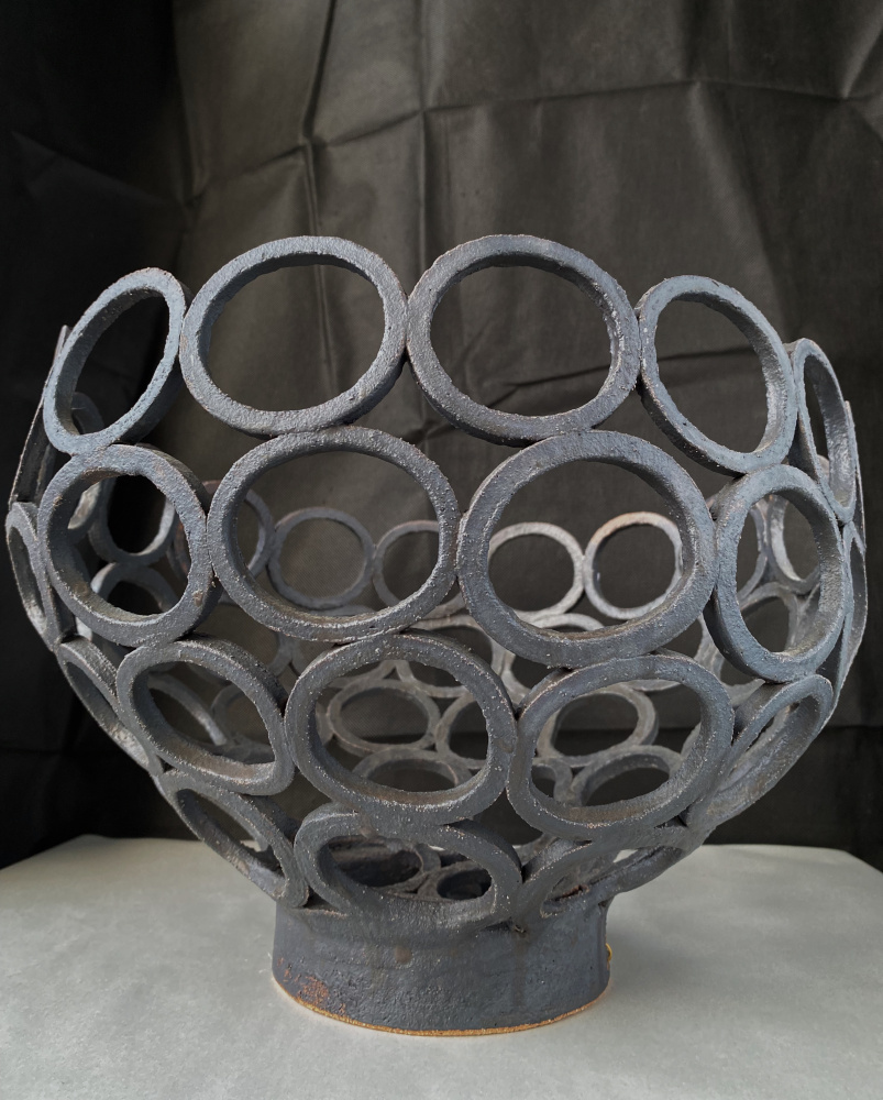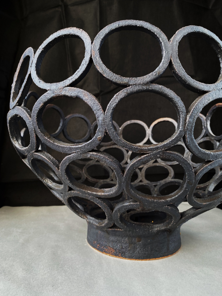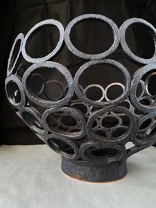 Dette er en stor matt sort keramikk bolle, som fungerer som en skulptur i rommet. Den er unik og finnes bare i ett eksemplar.