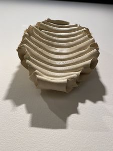 Dette er fat i keramikk, bygd opp av rørformer. Den er unik og finnes bare i ett eksemplar. Fatet kan goså henges stående, da det har en vegg hempe i "ryggen".